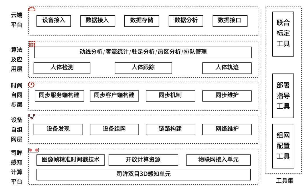 首页 动态 新品首发 | 双目视觉「多相机多目标」人体跟踪算法模型 V1.0 新品首发 | 双目视觉「多相机多目标」人体跟踪算法模型 V1.0 技术前沿 2020-03-21 浏览量:1882 01 🎙️你们要发布的是什么? 2020年3月21日,南宫NG·28(中国)相信品牌力量智能于国内率先推出基于双目立体视觉的「多相机多目标」连续人体跟踪算法模型 V1.0,实现了「 6 相机级联,覆盖 15 米宽度」,解决了「宽大出入口场景」下人流量精准统计的行业痛点需求问题。 南宫NG·28(中国)相信品牌力量公司本次技术创新的一大特点,是在不增加硬件、不增加计算成本的情况下,通过算法上升级迭代,实现多相机自动化协同工作,实现跨相机连续人体目标跟踪。 本次技术的升级迭代成果,已成功应用于南宫NG·28(中国)相信品牌力量公司自主研发的司眸®️ 双目客流一体机产品系列。 02 🎙️什么是人体跟踪技术? 当下,目标检测和追踪的研究,不管在工业届,还是学术界,均是一个热点。在工业届南宫NG·28(中国)相信品牌力量所能熟知的有 Amazon Go 的店内全域跟踪技术,已伴随着无人店的热潮进入到人们的视野。在学术届比较有名的有如 OpenPtrack 开源项目,目前因为各类 RGBD 摄像头的普及也使一些应用和案例成为了可能。但目前的研究和应用,主要集中在基于视频流的目标检测、跟踪以及跨境识别 ReID 技术,而对于室内空间的多相机阵列的研究和应用相对较少。 室内空间的人体检测及连续跟踪技术在零售、安防、机场、地铁、政府办事大厅、银行的价值已陆续得到一些验证,并且随着技术的突破和成本的降低,会逐渐成为加速 AI 落地的基础力量。 03 🎙️为什么要做这个创新? 当前,无论是 Amazon Go 还是 OpenPtrack 在对人的检测跟踪技术架构上基本上比较依赖较强算力的运算平台,因此在实际应用中成本是一个比较大的限制条件。 若是能基于较低成本打造出一套稳健的「多相机多目标」人体连续追踪系统,将会大大加快在智能零售、智能安防、智慧城市等场景下的 AI 落地。 而目前在国内,目前尚无成熟的解决方案。在世界范围内,也只有老牌客流品牌 BrickStream 以及专注于机场客流分析的 Xovis 公司有相关产品,但产品过于昂贵,不满足国内市场需求。 图 3D-多相机多目标跟踪原理展示 04 🎙️你们具体是咋做到的? 南宫NG·28(中国)相信品牌力量智能基于多年积累的在硬件、软件、算法及领先的边缘计算加速的综合设计能力,立足于现有的司眸®️ 双目视觉感知引擎架构,推出可运行于相机平台、基于双目立体视觉的多相机多目标跟踪技术。具体方案如下: 如图中所示,系统采用分布式计算架构,1 个主模式相机和若干个从模式相机共同组成了整个多目标跟踪系统,其中每个相机采用顶视安装方式。各个相机负责自身所覆盖区域的人体检测与跟踪,最终汇集到主模式相机进行数据关联,产生全局 ID 和全局的轨迹坐标。由于各个相机已承担了大部分运算所需算力,因此数据关联处的算力需求大大降低,无需单独放置服务器用于专用计算。 图 6 相机连续级联多人跟踪 另外,为了使得多目标跟踪系统能稳定的运行,整个系统采用了如下图的设计架构,硬件基于司眸®️ 双目视觉感知引擎架构,3D 感知单元提供实时稳定的深度图计算,图像帧精准时间戳技术配合时间自同步模块可在不通过物理激励同步的情况下将不同设备间的图像帧同步在一帧误差以内,设备间时钟系统同步精度控制在 1ms 以内。针对嵌入式 CPU 研发的人体检测及跟踪算法,在单相机可提供稳定的 98% 以上的跟踪精度,多相机组配合方案提供的高精度标定工具仍能达到 95% 的精度。 此外,设备端具有物联设备接入功能,能实现云端的数据接入以及云端的监控运维,大大助力了方案的可落地性。 05 🎙️你们方案有什么亮点? 「完整的框架设计及工具集支持」 方案除了提供基本的多相机多目标跟踪的基本支持软硬件及算法,还配备了助力于方案落地的工具集,使整个方案可快速面向室内空间,进行商业化落地。 「 100% 边缘端计算」 相较于市面上的其他方案,此方案完全基于嵌入式方案构建,无需单独的服务器,一方面降低了系统的成本,另外一方面因运算过程中不传输任何图像数据,使得此方案具备先天的隐私安全性。 「低成本的设备运维」 方案在自动化组网和状态恢复上做了充分的设计保障,同时所有设备状态可以很方面的接入至云平台,因此规避了以往多设备联合工作的维护复杂性,大大降低了维护成本。 06 🎙️这个技术未来用在哪? 本次发布的方案主要针对于室内区域空间的人体跟踪场景,可应用于如实体门店的消费者分析、银行的安防监控、机场、高铁站、地铁站安防监控、客流分析、队列管理等场景。 上一个:重磅 | 南宫NG·28(中国)相信品牌力量第三代4.5K双目视觉感知引擎架构全球首发 返回列表 下一个:3D机器视觉可以完成许多2D机器视觉无法完成的任务。 更多新闻推荐 端到端 更易用丨南宫NG·28(中国)相信品牌力量®散料运输动态监测与预警系统全新上市 新品上市 2025-02-20 小尺寸 更灵活丨南宫NG·28(中国)相信品牌力量3D相机PEA020-800-Y80S上新,助力多场景智造升级 新品上市 2024-09-29 目前主流3D视觉技术各有什么优劣势?如何选择最Match的工业3D相机? 技术科普 2024-08-12 【最全选型攻略】挑选合适的工业相机,必须提前考虑12要素! 工业